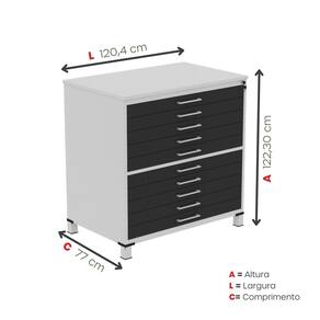 Possui 10 gavetas amplas com corrediças que facilitam a abertura, mesmo com carga total.