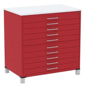 Mapoteca 10 Gavetas Pandin 120 cm (Larg) Inmetro Tampo MDP Branco Estrutura e Gaveta em Aço Vermelho - Cinza
