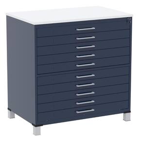 Mapoteca 10 Gavetas Pandin 120 cm (Larg) Inmetro Tampo MDP Branco Estrutura e Gavetas em Aço Azul - Cinza