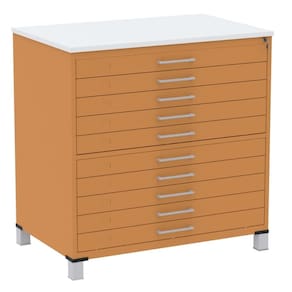 Mapoteca 10 Gavetas Pandin 120 cm (Larg) Inmetro Tampo MDP Branco Estrutura e Gavetas em Aço Laranja - Cinza