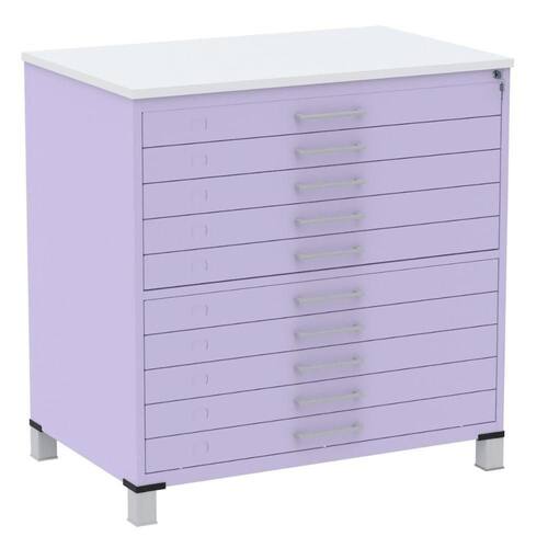 Mapoteca 10 Gavetas Pandin 120 Cm (larg) Inmetro Tampo Mdp Branco Estrutura E Gavetas Em Aço Lilás