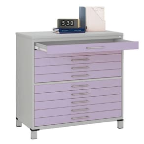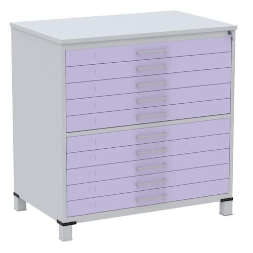 Mapoteca 10 Gavetas Pandin 120 Cm (larg) Inmetro Tampo Mdp Cinza Estrutura Aço Cinza Gavetas Lilás