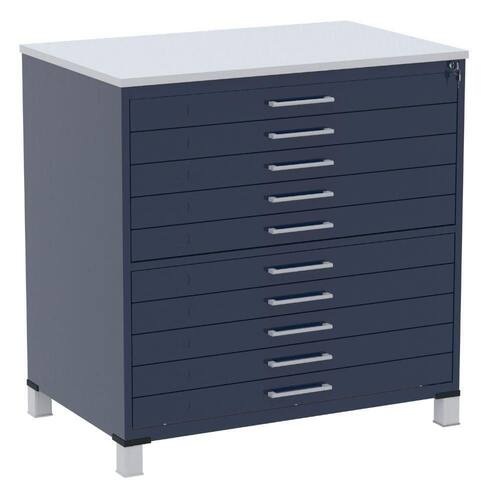 Mapoteca 10 Gavetas Pandin 120 Cm (larg) Inmetro Tampo Mdp Cinza Estrutura E Gavetas Em Aço Azul