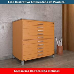 Mapoteca 10 Gavetas Pandin 120 Cm (larg) Inmetro Tampo Mdp Cinza Estrutura E Gavetas Em Aço Laranja