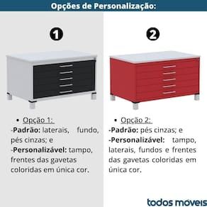 Mapoteca 5 Gavetas Pandin 120 Cm (larg) Inmetro Tampo Mdp Branco Estrutura E Gaveta Em Aço Vermelho