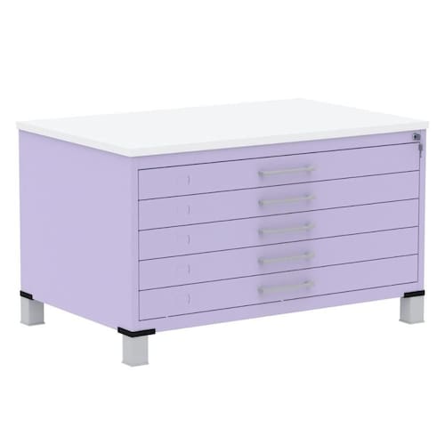 Mapoteca 5 Gavetas Pandin 120 Cm (larg) Inmetro Tampo Mdp Branco Estrutura E Gavetas Em Aço Lilás