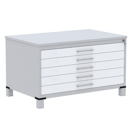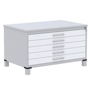 Mapoteca 5 Gavetas Pandin 120 Cm (larg) Inmetro Tampo Mdp Cinza Estrutura Aço Cinza Gavetas Brancas