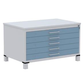 Mapoteca 5 Gavetas Pandin 120cm (Larg) Inmetro Tampo MDP Cinza Estrutura Aço Cinza Gaveta Azul Dali