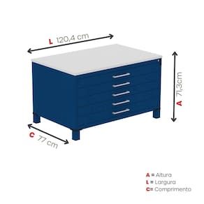 Mapoteca Mont 5 Gavetas 71,3cm X 120,4cm Aço Azul DelRei - Azul Doce