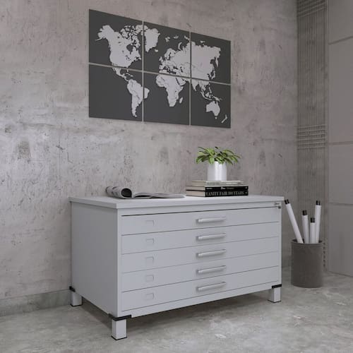 Organize e preserve seus projetos, mapas, plantas e documentos de grande formato com a Mapoteca em Aço com 5 Gavetas da Pandin. Fabricada com estrutura reforçada em aço de alta qualidade, esta mapoteca garante durabilidade, segurança e um excelente aproveitamento de espaço.
