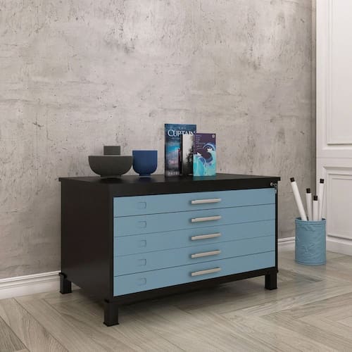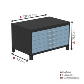 Mapoteca Mont 5 Gavetas 71,3cm X 120,4cm Aço Preto/Azul Dali