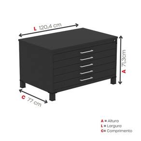 Possui 5 gavetas amplas com corrediças que facilitam a abertura, mesmo com carga total.