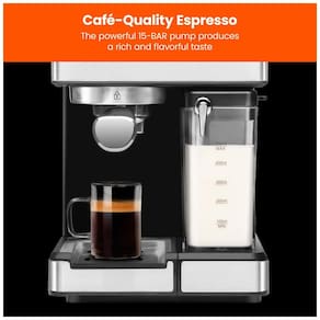 BEBE COM FACILIDADE Embora sua xícara de café da manhã possa ser mais complexa com a máquina de café expresso, seu processo de preparo será mais fácil do que nunca. Com a operação simples de um toque, você pode preparar e espumar sua xícara perfeita. Além disso, com o reservatório de água XL de 1,8 litros, você pode esquecer as recargas diárias.