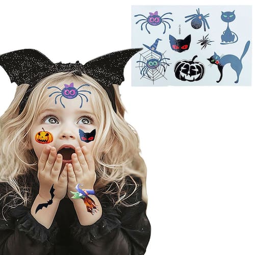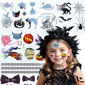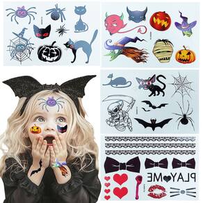 Festa Halloween Maquiagem Adesiva para o Rosto Tatuagem Temporária - Kit 4 Cartelas Infantil Adulto.