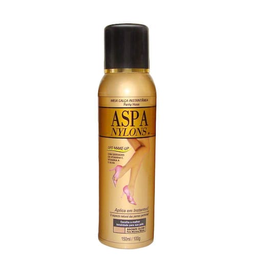 A Maquiagem Para Pernas Aspa Spray Nylons Bronze 150ml permite a você a sensação de liberdade total. O produto maquia suas pernas, deixando sua pele macia com aditivos enriquecedores, como derivados de Oliva e Vitamina E Minimiza algumas manchas como as de celulites, os azulados das veias e outras imperfeições, dando um visual mais leve e um toque sedoso. Não sai facilmente com água, o que aumenta sua durabilidade.