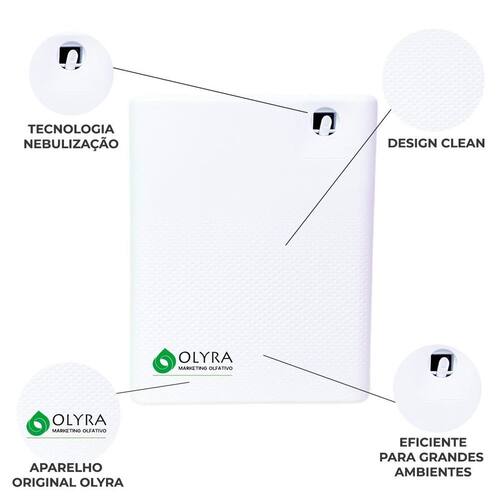 a máquina olyra intense, para aromatização e marketing olfativo, é o equipamento ideal para os seus ambientes com alta tecnologia e modernidade, você pode programar o dia e horário que você deseja que sua maquina funcione. Benefícios: