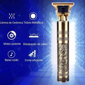 Maquina cabelo dragao Bela máquina que de além de possuir um designer único, traz em sua lâmina um formato t, que facilita na hora de fazer marcações e acabamentos, contornos, desenhos, contando também com uma visão limpa das lâminas permitindo mais precisão e agilidade. Utilidades: -cortar cabelo-desenhos-acabamentos-contornos-aparar pelos do peito, pernas e axilas e costas Informações técnicas: Bateria de íon 18650/18500 lithium bateria de ion 5v Carregador de longa duração Corte preciso Longa duração da bateria 2horas seguidas de uso Suas lâminas são de aço al carbono Itens: 1 aparelho máquina de cortar 4 pentes 1.5 2.0 3.0 e 4.0 1 escovinha de limpeza 1 cabo carregador usb 1 oléo lubrificante Dimensões: Comprimento: 15cmDiâmetro: 2,5cmCabeça de corte: 4cm Perguntas frequentes: P: ela é pesada pra manusearR: ela pesa apenas 173g e além disso é bastante ergonômica, ideal para trabalhos de longas horas seguidas. P: como faço pra recarregarR: com um cabo usb capaz de recarregar a bateria interna, cabo esse que já está incluso na sua compra. P: as lâminas são resistenteR: sim suas lâminas são de aço. Um produto que une qualidade e beleza. Marca: Hair Trimer