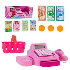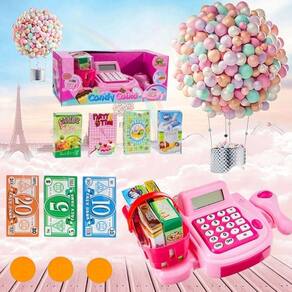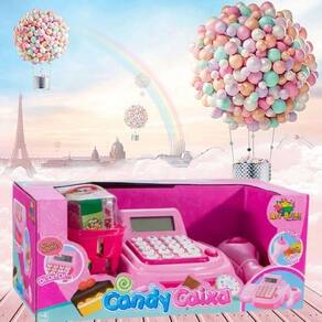 Candy Caixa é um produto completo para a menina que gosta de brincar de supermercado. A Caixa Registradora Eletrônica da Art Brink, vem com diversos acessórios, para a brincadeira. Ela conta com miniaturas de produtos de supermercado, além do simulador de leitor de produtos para que o faz de conta fique perfeito. Quando passa o cartão, a gaveta abre. O brinquedo também tem luzes e sons, para que a brincadeira fique ainda mais real. Vem também uma cestinha com diversos produtos de supermercado, além de cédulas e moedas de dinheirinho de brinquedo. As meninas adoram também o microfone e a calculadora.