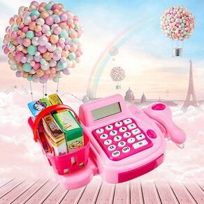 Máquina Caixa Registradora Infantil Som Luz E Acessórios Cor: Rosa DESCRIÇÃO