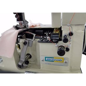 Máquina Galoneira 4 Fios Portátil BC2600-3P Bracob Utilização: Doméstica - Base: Plana fechada - Aplicação: Tecidos leves - Sistema de Transporte: Simples - Nº de agulhas: 3 (Bitola 1/4 = 6,4mm) - Tipo de agulha: B-63 - Nº de fios: 4 - Tamanho do ponto: de 1~4mm - Sistema de lubrificação: Manual - Tipo/potência do motor: Doméstico 250W - Utilizada para fazer barras, pregar golas, mangas e punhos em camisetas - Furação para aparelhos de viés, barra e viés sobreposto - Pode ser utilizada com menos agulhas/fios, dependendo do trabalho a realizar