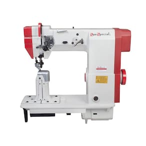Máquina de costura industrial coluna transporte triplo ideal para costura de bolsas, carmurças, luvas e calçados.