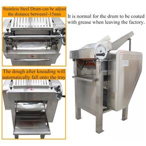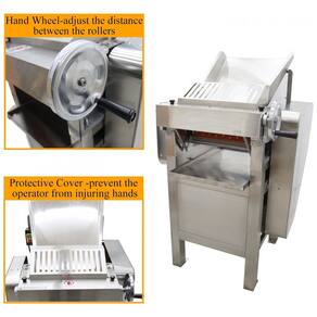 A Máquina de Preparo de Massas de Alta Velocidade da HQHAOTWU é equipada com um potente motor de 2200W, atingindo eficiência de 150kg/h. Com rolo de 11,8 polegadas e espessura ajustável entre 1-15mm, essa máquina de aço inoxidável é perfeita para fazer massa de dumpling, panquecas, massas folhadas e muito mais. Seu design seguro inclui botão de liga/desliga, tampa protetora no alimentador e bandeja para coleta de massa. Prepare uma variedade de delícias de forma rápida e higiênica!