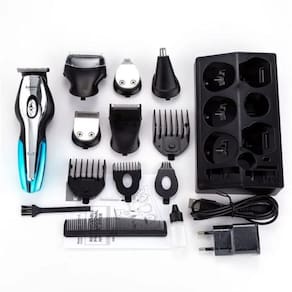 Barbeador elétrico 11 em 1 Recarregável Kemei KM-5031 - Máquina para Cortar cabelo 11 x 1 recarregável com 6 cabeças diferentes para corte, cada uma com sua função. - Aparador de tamanho completo: Definir o cabelo ao redor do decote com precisão e de forma uniforme. - Aparador de precisão: Definir tanto em linha reta e ondular cabelos através das linhas curvas ou bordas. - Detalhe barbeador: Flutuante para um fim, barbear confortável e eficiente na curva do rosto. - Nariz aparador de pelos: Trim nariz/orelha cabelos de forma segura para o máximo conforto. - 2 lâminas shaver: Raspar e linhas de acabamento ou bordas para garantir uma estreita, limpa e suave resultados. - Gravura trimmer: Personalizado corte tipos de modelagem barba. - 4 pentes de guia: Corte de cabelo facilmente ajustando tamanhos. Especificação: Nome do produto: Kemei 11 em 1 máquina de barbear Material: ABS Cor: azul, preto Tamanho do host: 14.5x3.9cm / 5.7 "x1.5" Bateria: Bateria Ni-Cd recarregável incorporada Entrada: 100-240V 50Hz / 60Hz 3W Tempo de carregamento: 2H Tempo de trabalho: até 120 min Características: 1. Cabeça de corte lavável 2. Equipado com 4 pentes de limite ajustável 3. Motor forte, poderoso 4. Ângulo obtuso em forma de R da cabeça de corte, não ferir a pele 5. 30 ° de ângulo agudo em T tecnologia de corte em forma, super afiada e resistente ao desgaste 6. Base de suporte, ajuda a organizar os acessórios ordenadamente 7. USB recarregável, 2 horas de carregamento rápido Incluído no Pacote: 1 - Máquina para Cortar Cabelos 6 - Cabeças de Laminas 4 - Pentes Dentados 2 com regulagem de altura de 6 a 20mm 1 - Vidro de Lubrificante para laminas 1 - Cabo usb 1 - Pente de Cabelo 1 - Escova para limpar as lâminas Manual em inglês. REGISTRO ANVISA N°80700620001 Marca: Não Informado