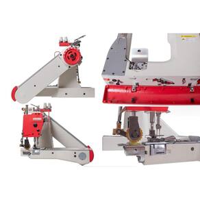 Máquina de costura industrial fechadeira de braço para a confecção de vestuário utilizada para fechamento lateral de short tactel e tecidos médios.