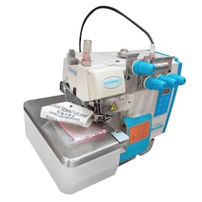 Máquina de costura industrial overlock ponto cadeia com embutidor de correntinha para confecção de vestuário com tecidos leves e médios.