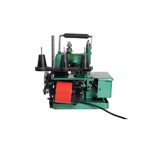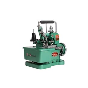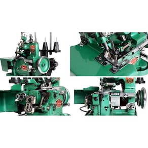 Máquina de costura industrial overlock para confecção de vestuário com tecidos leves e médios.
