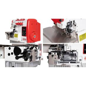 Máquina de costura industrial overlock para confecção de vestuário com tecido leves e médios.