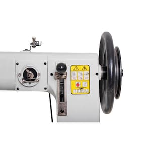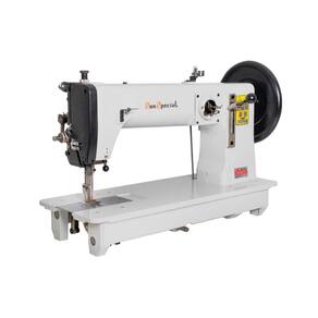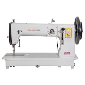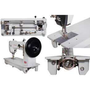 Máquina de costura industrial transporte triplo plana ideal para materiais pesados como couros ou peles.