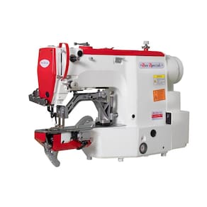 Máquina de costura industrial travete eletrônica para confecção de vestuário com tecidos leves e médios.