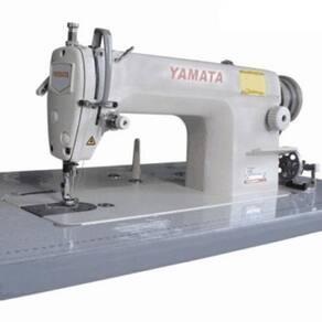 Máquina de Costura Reta Yamata Nova Máquina de costura Industrial Nova, Tipo Reta, Marca Yamata, uma agulha, 4500rpm, lubrificação automática, ponto até 5 mm, completa com conjunto de montagem composto por: tampo de madeira revestido em fórmica impermeável, estante de ferro, motor importado (silencioso) 1/2hp 110/220 v com chave de reversão de voltagem e velocidade e acessórios para manutenção.