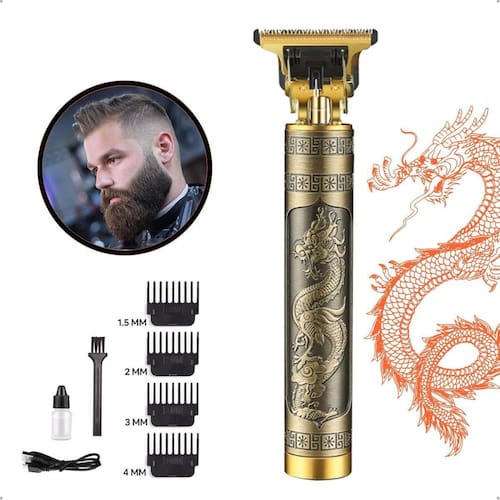 Máquina dragão ou buda dourado profissional para barba e cabelo esta máquina é usada nas barbearias mais famosas dos eua, não, somente, por conta do seu design moderno e luxuoso. A máquina buda é extremamente confortável e delicada, a lâmina em t permite que você faça a barba ou raspe o cabelo livremente em qualquer direção.