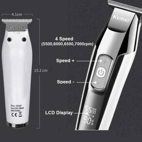 Chegou a nova e exclusiva máquina Kemei KM-5027, esta incrível máquina pequena e potente agora está disponível para você comprar em território nacional com a nossa loja. Este modelo é sem fio e recarregável na tomada, assim você terá todo o conforto de cortar cabelos sem ter cabo lhe atrapalhando. A máquina é leve e boa de se manipular, possui uma bateria de alta duração comparada com outros modelos, uma carga de 2 horas lhe dá 4 horas de uso. Ela é perfeita para profissionais da área, possui um motor potente de 5w. Aguenta o trabalho duro do dia a dia e pode ser utilizada carregando. Serve para fazer pezinho, desenhos, disfarce, o que manda aqui é sua habilidade. Este modelo tem um visor em LCD e controle de rotação, caso você precise de força adicional em sua máquina pode ajustar a velocidade do motor apertando + ou diminuir apertando -. A rotação escolhida aparece no visor, juntamente com a porcentagem da bateria. Esta máquina é da marca Kemei, uma marca muito promissora que vem fazendo produtos de ótima qualidade e com um preço justo focado no mercado brasileiro, ao adquirir este produto tenha certeza de ter feito um boa aquisição. Esta máquina possui qualidade e mais funcionalidades que muitas outras de marcas conhecidas, que custam o dobro, ou três vezes mais. Nossa loja também trabalha com máquinas para corte de cabelo sem fio e com fio, barbeadores e máquinas shaver. Veja todos nossos anúncios Acompanha 3 pentes guia tamanhos 1mm/2mm/3mm, para você já receber e começar a praticar seus cortes Totalmente recarregável em rede elétrica 110 ou 220v, acompanha a fonte bivolt. 2 Horas de carga para 4 horas de uso. Potência: 5W Frequência: 50/60Hz Itens inclusos: 01 Máquina KM-5027 01 Fonte 110/220v 01 Cabo USB 03 Pentes Guia 01 Óleo Lubrificante 01 Escova para Limpeza Garantia de 90 dias contra defeito de fabricação