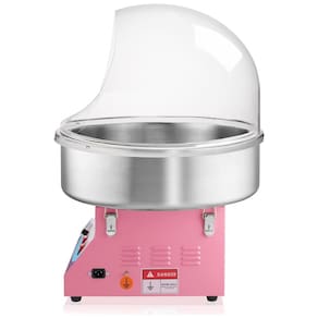 Máquina de algodão doce elétrica profissional, 110V, 1000W, com bacia de aço inoxidável de 20 polegadas e cúpula de proteção transparente.Base antiderrapante