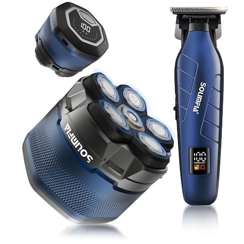 O barbeador elétrico SOLIMPIA tem as seguintes vantagens: Em primeiro lugar, a cabeça flutuante de precisão 6D de titânio atualizada pode se flexionar em todas as direções para se ajustar às curvas da pele da cabeça, proporcionando a melhor experiência de barbear sem dor e suavidade. Nosso novo design magnético removível atualizado facilita a remoção de toda a lâmina, facilitando uma limpeza mais fácil e profunda do que outros modelos. Todo o corpo do barbeador elétrico SOLIMPIA é à prova d'água IPX6, seguro para uso no chuveiro com água corrente, oferecendo um barbear confortável a seco ou um refrescante barbear úmido com espuma de barbear. Além disso, a grande capacidade da bateria suporta até 150 minutos de tempo de execução após uma carga de 2,5 horas, excedendo em muito a de outros produtos. Além disso, o display LED indica a energia restante e a função de bloqueio de viagem ajuda a evitar toques acidentais e consumo extra de energia. Nosso aparador masculino permite cortes lineares e de borda sem folga. Inclui quatro tamanhos de pentes guia para atender às suas necessidades de aparar a cabeça e o rosto. Este kit oferece o melhor em barbear a cabeça e a barba com tecnologia avançada para um barbear suave e firme, sem irritações. Nosso aparador não é à prova d'água, limpe-o com uma escova e não o enxágue com água. Nosso barbeador de cabeça é mais adequado para cabelos de 2 mm. Para cabelos mais longos, é recomendável usar primeiro o aparador. - Barbeador elétrico de cabeça flutuante 6D atualizado: o barbeador elétrico SOLIMPIA possui uma cabeça flutuante de precisão 6D e um motor premium. O barbeador se adapta a diferentes cabeças, rostos e pescoços em todas as direções para garantir uma experiência de barbear suave, eficiente e relaxante. - Grande capacidade de bateria: Equipado com uma poderosa bateria integrada de íon de lítio (1400 mAh) e interface tipo C, o barbeador elétrico e o aparador de cabelo SOLIMPIA permitem 150 minutos de uso sem fio para se barbear em qualquer lugar e a qualquer hora, superando outros modelos. - Cabeça de corte magnética removível atualizada: nosso novo design magnético removível atualizado facilita a remoção de toda a lâmina, facilitando uma limpeza mais fácil e profunda do que outros modelos. Limpe todos os pelos residuais após cada barbear para manter a navalha nas melhores condições. - Barbeador de cabeça seco e úmido à prova d'água IPX6: Todo o corpo do barbeador elétrico SOLIMPIA é à prova d'água IPX6, seguro de usar no chuveiro com água corrente, oferecendo um barbear confortável a seco ou um refrescante barbear úmido com espuma de barbear. A cabeça removível e lavável permite que você limpe diretamente sob a torneira. - Display de LED e bloqueio de viagem: a tela de LED indica o nível da bateria do barbeador e o tempo de uso restante. O botão liga/desliga pressionado e prolongado do barbeador aciona uma trava de segurança, evitando toques acidentais e consumo extra de energia. - Kit profissional tudo-em-um: nosso aparador masculino permite cortes lineares e de borda sem folga. Inclui quatro tamanhos de pentes guia para atender às suas necessidades de aparar a cabeça e o rosto. Este kit oferece o melhor em barbear a cabeça e a barba com tecnologia avançada para um barbear suave e firme, sem irritações. - NOTA ESPECIAL: Nosso aparador não é à prova d'água, limpe-o com uma escova e não o enxágue com água. Nosso barbeador de cabeça é mais adequado para cabelos de 2 mm. Para cabelos mais longos, é recomendável usar primeiro o aparador.