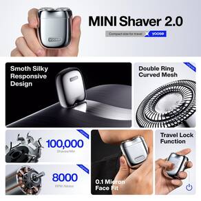 - Tamanho de viagem, mini portátil – Barbeie em movimento, faça a barba sempre que quiser. Mini barbeadores portáteis de viagem são a marca registrada da yoose. Casa, viagem, escritório ou mantenha-o no carro para emergências. Para facilitar o transporte e armazenamento, o barbeador elétrico masculino vem com uma capa de couro de armazenamento.