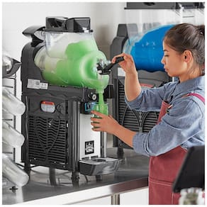Apresentando controle de espessura ajustável, chassi de aço inoxidável durável, bandeja removível e válvula à prova de vazamentos para fácil limpeza. O bowl single de 6,1 litros oferece alta visibilidade, sendo ideal para ambientes de baixo uso. Perfeito para delícias congeladas como smoothies, slushies e granitas. Este dispensador único certamente impulsionará as vendas de bebidas, mostrando as bebidas refrescantes dentro dele e aumentando a sede dos clientes. Mantenha seus clientes felizes e hidratados com todas as suas deliciosas misturas congeladas dispensadas de forma fácil e eficiente. Feito de um durável chassi de aço inoxidável, bandeja removível e válvula à prova de vazamentos, este dispensador mantém seu processo de bebidas congeladas livre de problemas para servir seus clientes de forma eficiente. O bowl de 6,1 litros claro e livre de BPA oferece alta visibilidade do conteúdo, incentivando potenciais clientes a experimentar suas bebidas. Esta máquina de slushy é ideal apenas para ambientes de baixo uso. Não permita que a máquina funcione por mais de 8 horas seguidas. Este dispensador inclui um controle de espessura do slush no verso do aparelho, proporcionando a consistência perfeita para cada ocasião.