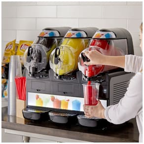 Desfrute de um delicioso refresco congelado com grande estilo utilizando a Máquina de Bebidas Congeladas triplo 9,8 litros Vollrath VCBF16837AF! Seja em restaurantes, lojas de conveniência ou bares, esta máquina é essencial para agilizar e impulsionar o serviço de bebidas congeladas. Capaz de preparar desde granitas e smoothies até café/chá gelado ou congelado e coquetéis, este equipamento expandirá significativamente seu menu de bebidas. Com funcionalidade de autofill integrada, as tigelas são automaticamente recarregadas quando atingem um certo nível pré-definido. As três tigelas de 10 litros possuem design transparente, permitindo identificar claramente as bebidas. Controles intuitivos customizáveis, modo de bebidas congeladas e de granita, sistema de acionamento magnético confiável e de fácil manutenção, superfície de congelamento ampla e compressor dimensionado corretamente para redução do tempo de congelamento. Fácil de limpar e operar, a máquina Vollrath VCBF16837AF é ideal para atrair e satisfazer seus clientes!
