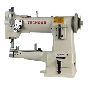Máquina de Costura de Braço Transporte Triplo com Lançadeira Grande e lubrificação automática usada para aplicação de viés em bolsas e artigos de couro . TK335BH-Máquina de braço Lançadeira Grande Utilizar linha maximo 40 e 30, o sistema de lançadeira delas nao foi feita pra linha grossa, 10,20, pois precisa usar linha 30 na bobina, Utilize diversas guias e aparelhos .