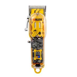 Máquina de cortar cabelo recarregável transparente com display digitalNG-411 AmareloAlavanca catracada 0.5/1.4/2.2/3.0mmLamina justa se no zero gapEntrada do adaptador: 100-240V Lâmina de aço inoxidável 440C 9CR18 de alta qualidade e precisão.Lamina WedgeTampa transparente com base de transferência de água verde.Bateria de lítio: 2600mAh3 horas de carga total Para 240 minutos de uso.Velocidade do motor: 6500 RPM.Itens inclusos:1 Maquina Wmark 411 Amarelo 6 Pentes guia 1 Escova de limpeza 1 Fonte de alimentação1 Pente de cabelo1 Anel de borracha1 Divisor de Cabelo Marca: Wmark