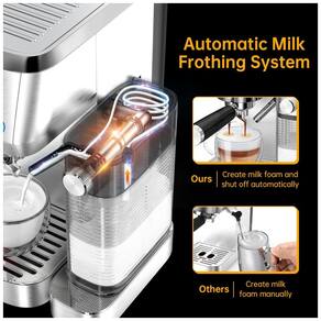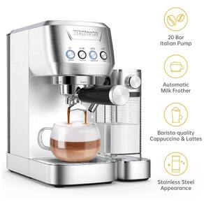 A máquina de café expresso semiautomática 2 em 1 apresenta um espumador de leite totalmente automático integrado, permitindo que você faça expresso, cappuccino ou latte com apenas um ou dois toques de botão. Com as próprias configurações de espuma de leite e proporção de café da máquina de café com leite, isso faz de você um barista doméstico. A máquina de café expresso MAttinata com espumador de leite permite que você desfrute de café expresso, capuccino e latte com qualidade de barista em casa. A máquina compacta para fazer cappuccino apresenta um design elegante em aço inoxidável e é ideal para cozinhas de qualquer tamanho. O tanque de água amigável de 49 onças é removível para fácil enchimento ou limpeza. A bandeja coletora removível facilita o enxágue e as xícaras mais altas podem ser usadas para fazer xícaras maiores de café. O reservatório de leite removível pode ser colocado na geladeira para manter o leite fresco entre os usos. A cafeteira Mattinata vem com máquina de café expresso1, reservatório de leite1, tanque de água1, filtro de xícara única1, filtro de xícara dupla1, filtro ESE1, porta filtro de 51 mm1, colher de café com tamper1.