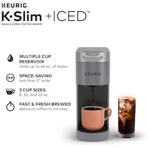 Conheça a cafeteira KSlim ICED, a solução perfeita para quem gosta de café quente e gelado. Com o recurso Brew Over Ice, a temperatura do preparo é ajustada automaticamente, começando mais quente para extrair todo o sabor e esfriando em seguida para derreter menos o gelo, proporcionando um sabor vibrante e equilibrado em apenas dois minutos. O reservatório de água removível de 1,62 gramas permite preparar até quatro xícaras de oito onças antes de reabastecer, oferecendo conveniência e praticidade. Com menos de 12 centímetros de largura, a cafeteira cabe perfeitamente em sua bancada. Escolha entre três tamanhos de xícara para café quente 236mL, 295mL e 355mL, tamanho e temperatura otimizados para a melhor experiência com gelo. A bandeja coletora removível acomoda canecas de viagem de até 7,0 de altura e contém uma bebida acidental completa para fácil limpeza. A cafeteira KSlim ICED é compatível com o filtro de café universal My Kcup, permitindo que você use seu próprio café moído vendido separadamente . Além disso, o recurso de desligamento automático ajuda a economizar energia, desligando a cafeteira 5 minutos após a última preparação.