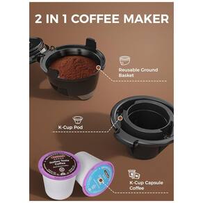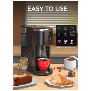 Esta cafeteira 2 em 1 é perfeita para quem gosta de variedade em seu café. Compatível com cápsulas KCups e café moído, ela possui um filtro 2 em 1 que atende às diversas preferências dos usuários. Além disso, a preparação do café é rápida, levando apenas 90 segundos para desfrutar de uma deliciosa xícara de café, eliminando tempos de espera desnecessários. A operação é simples e fácil, graças à tela sensível ao toque responsiva, que oferece 5 opções de tamanhos de preparo. A limpeza também é fácil, com um reservatório de água removível de 1,1L e bandeja coletora removível. O indicador de descalcificação acende quando é hora de uma limpeza completa. Com um design compacto de 27,43 cm x 13,97 cm x 30,48 cm, esta cafeteira é elegante e economiza espaço, cabendo perfeitamente na configuração da sua casa e sendo ideal para fácil armazenamento.