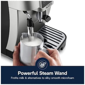 Máquina de café expresso automática De Longhi Magnifica Start, 110V, com design simples, moedor de rebarba cônico, bico de leite manual, função de limpeza automática e painel onetouch.Moedor de café integrado