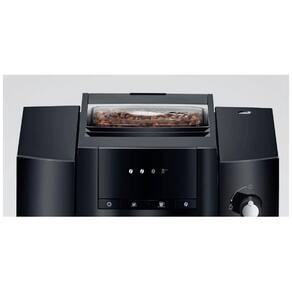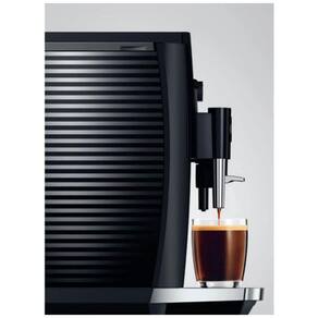 Máquina de café expresso automática Jura E4 com moedor integrado, funções de pré-seleção, visor LED e processo de infusão 3D para aroma encorpado. Ideal para café em grãos com 3 níveis de intensidade.Moedor de café integrado