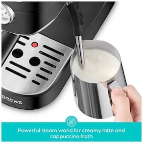 Prepare seu café expresso favorito em casa com a máquina de café CASABREWS com espumador de leite, permitindo que você faça todos os seus cafés favoritos à base de espresso. Desfrute de um latte, cappuccino ou macchiato estilo barista em casa. Aparência em aço inoxidável, elegante e durável, ideal para cozinhas de qualquer tamanho. Esta cafeteira compacta é perfeita para uso doméstico ou no escritório. Sistema de Pressão Profissional de 20 Bar Semiautomática 2 em 1, com bomba italiana profissional de 20 bar e motor potente de 1350 W. Esta máquina de café expresso compacta oferece extração de alta qualidade, resultando em um aroma mais fragrante e rico. O medidor de pressão integrado nesta máquina de cappuccino mostra a pressão exata, ajudando a fazer ajustes de acordo com suas preferências de sabor pessoais. Você pode criar um cappuccino, latte ou flat white em casa ou no escritório com nossa cafeteira espresso. Sistema de Espumação de Leite Nossa cafeteira possui uma poderosa lança de vapor para texturizar leite cremoso e rico e criar arte incrível com espuma de leite para realçar o sabor de seus cafés. Desperte seu barista interior e crie sua própria arte única com espuma de leite. Compacta, Estilosa e Prática O belo e compacto design torna esta máquina de latte adequada para cozinhas de qualquer tamanho. Faça shots de espresso simples ou duplos com uma bela camada de crema em minutos! O tanque de água de 34 oz permite preparar várias xícaras e é removível para facilitar o reabastecimento. Componentes incluídos: Máquina de Café Expresso, Tanque de Água Removível de 34 oz, Filtro de Preparo para Uma Xícara, Filtro de Preparo para Duas Xícaras, Portafiltro, Socador com Colher, Manual de Instruções. Dicas Úteis: Por favor, não faça café imediatamente após vaporizar leite. A máquina deve esfriar primeiro, caso contrário a temperatura e pressão internas serão muito altas, e a máquina entrará em modo de proteção contra superaquecimento. As luzes de 1 xícara ou 2 xícaras piscarão repetidamente. Siga as instruções do guia incluído para resfriar a máquina. Assista mais vídeos instrutivos clicando em Visitar a Loja CASABREWS.