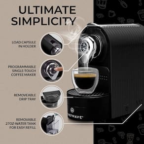 - Compatível com cápsulas Nespresso autêntico Line: Projetado para uso com as cápsulas autêntico Line Nespresso ou qualquer outra cápsula da marca. O Kava está equipado com um sistema de aquecimento rápido que atinge a temperatura ideal em menos de 30 segundos!